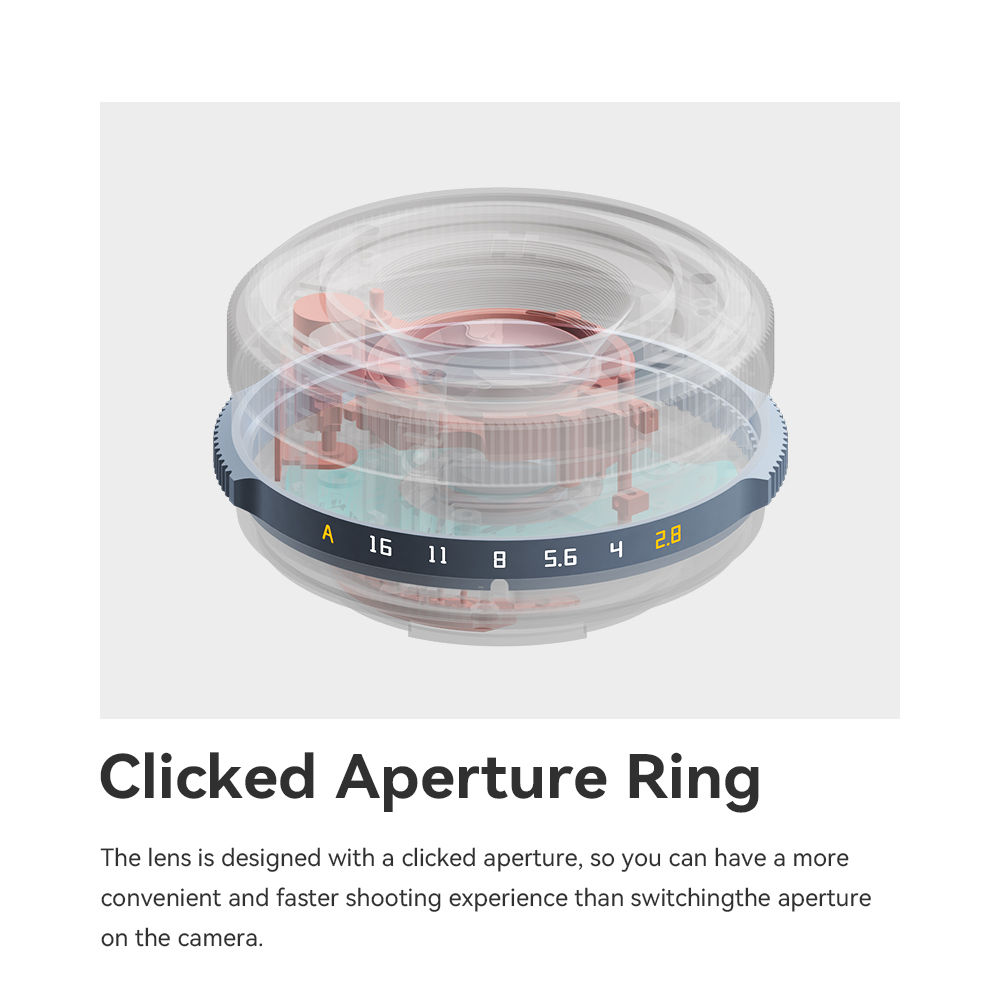 | Focal length | 27mm | Maximum aperture | F2.8 |